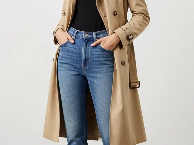 It is the perfect partner for a classic trench coat and straight-leg denim. A cropped hem on the jeans is a key styling detail, allowing the polished boot to be fully seen. A simple black turtleneck completes this effortlessly chic and enduring look.